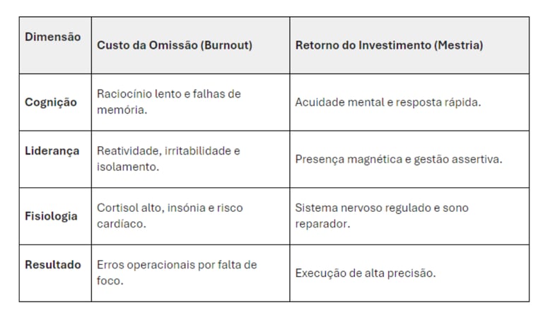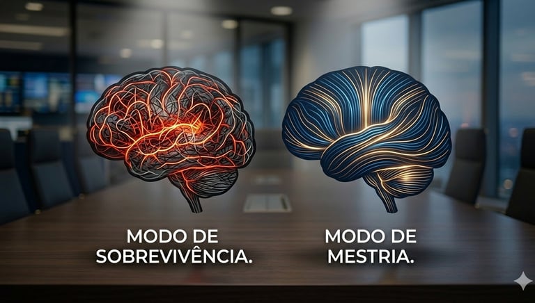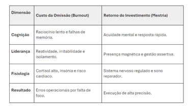 No topo, a pressão é constante. Mas quando o ruído interno supera a sua capacidade de foco, o sistema entra em colapso. O Burnout não é apenas cansaço; é uma falha crítica na regulação da sua energia vital.